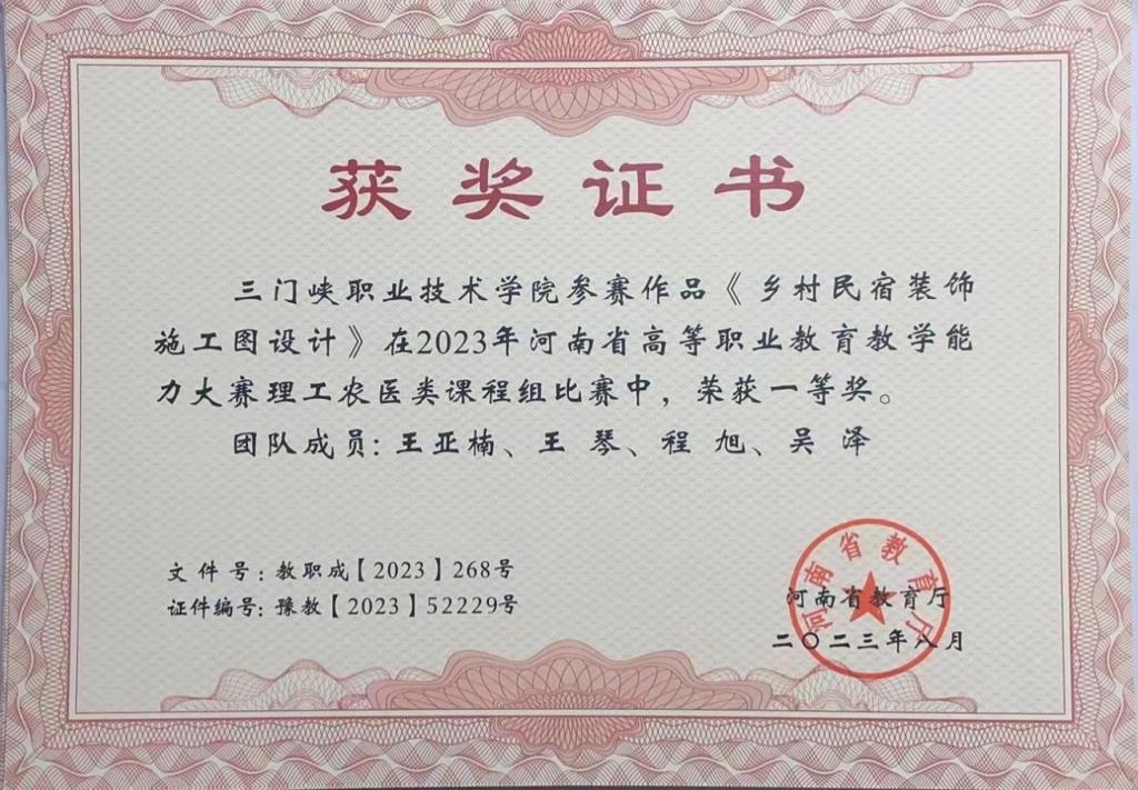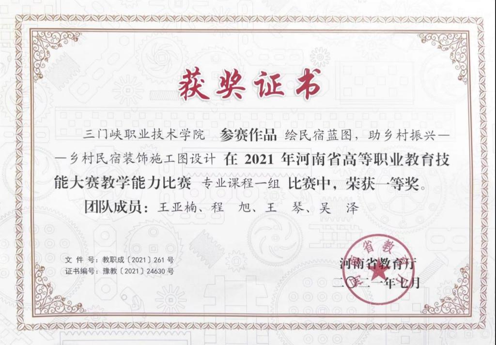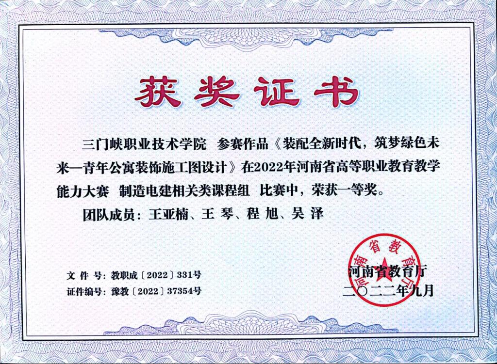 2003网站太阳集团注重加强对学生创新创业能力和职业技术能力的培养,学生参加省级以上职业388vip太阳集团官网共51次,共取得5项国家级大赛奖项、40余项省级大赛奖项。其中,2021年石龙飞等参加第七届中国国际“互联网+”大学生创新创业大赛荣获国家级铜奖;2022年张权胜等参加“移动互联创新大赛(高职组)”荣获国家级银奖;2023年邹坤明等参加第八届中国国际“互联网+”大学生创新创业大赛荣获国家级铜奖;2023年马梦哲、郭佳栋参加河南省高等职业教育技能大赛建筑装饰数字化施工赛项荣获省级一等奖。