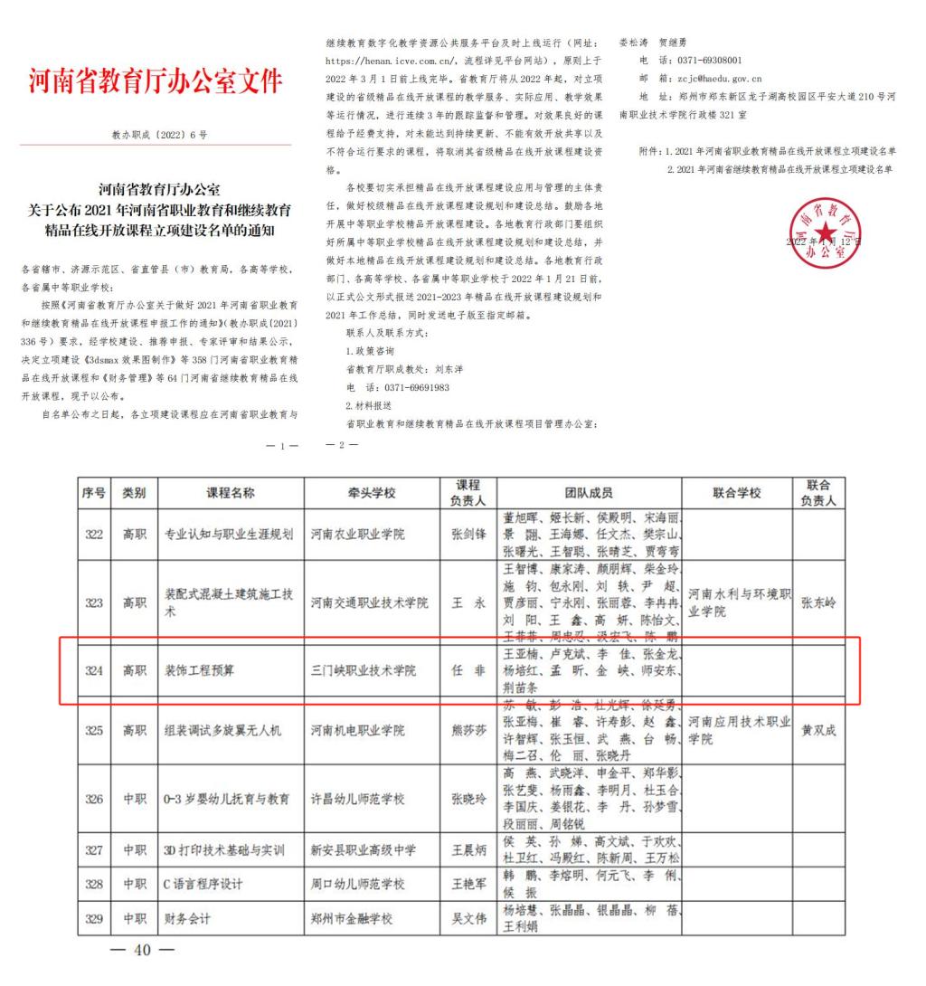 获得2022年河南省职业教育和继续教育精品在线开放课程立项
