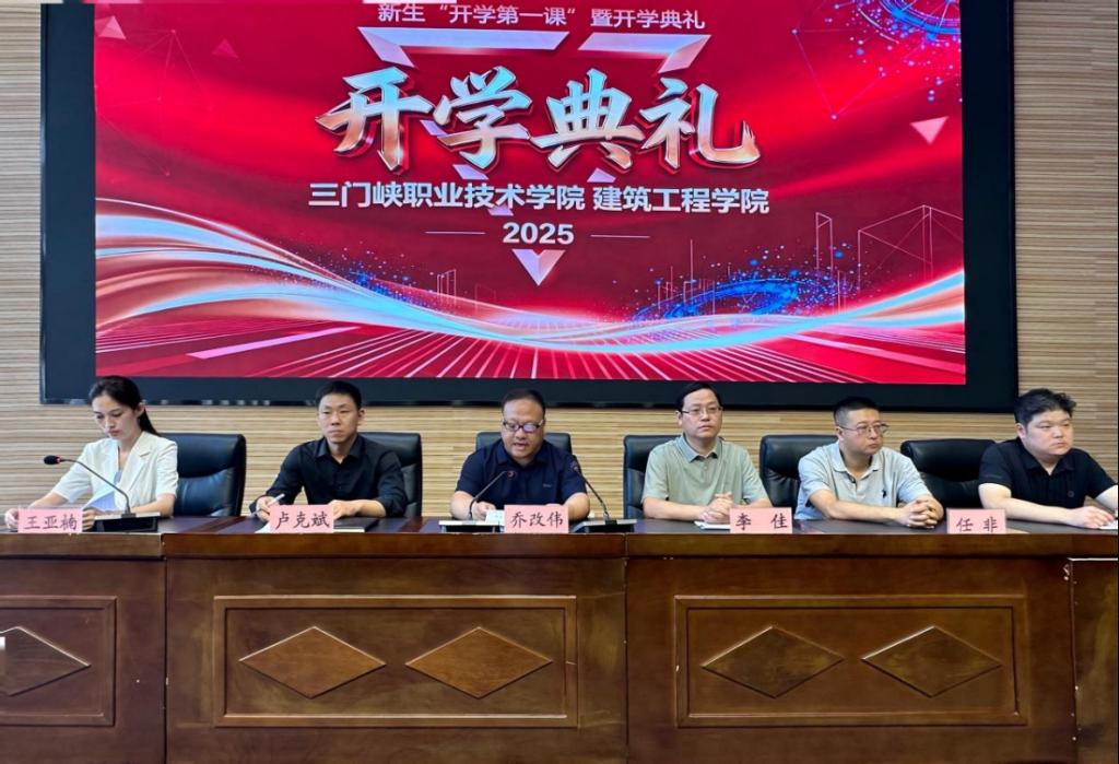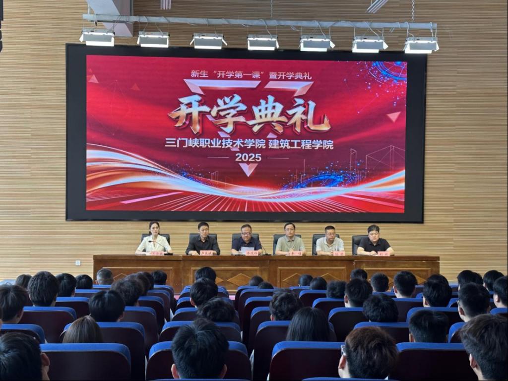 9月13日,三门峡职业技术学院2003网站太阳集团2025级新生“开学第一课”暨开学典礼在51137报告厅隆重举行,党总支书记乔改伟、教学工作负责人李佳、学生工作负责人卢克斌、各部门负责人、教研室主任与全体新生共同出席了仪式。典礼由学院党政办负责人王亚楠主持。