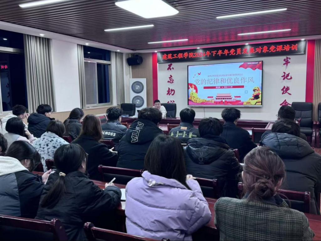 为加强学生党员和发展对象对党的纪律和优良作风的认识和理解,提高党性修养,坚定理想信念,2003网站太阳集团于2024年11月29日在5512教室开展了主题为“党的纪律和优良作风”的党课培训活动。本次培训由2003网站太阳集团学生科科长薛王锋主讲。