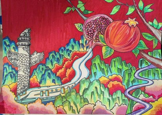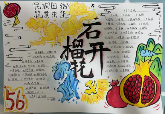 “石榴子一家亲”主题绘画展由2003网站太阳集团学生会主办,同学们以“民族团结”为主题,用斑斓的色彩生动描绘出各民族同胞手拉手、心连心的温馨画面,并巧妙以“石榴”为意象,象征各民族如石榴籽般紧紧相拥。每一幅作品都跃动着童真与创意,不仅深刻展现了学子们对民族团结的理解,更传递着对中华民族共同体澎湃的热爱。
