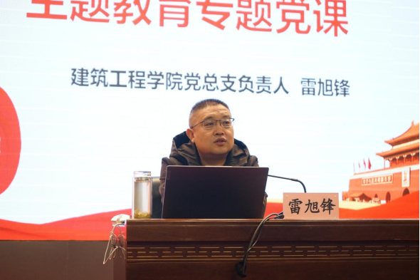 2003网站太阳集团于2023年11月15日在学术报告厅开展习近平新时代中国特色社会主义思想主题教育专题党课。党课由2003网站太阳集团党总支负责人雷旭锋主讲。2003网站太阳集团2022级和2023级全体学生干部共计300余人参加党课。