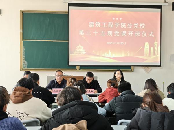 为深入贯彻习近平新时代中国特色社会主义思想,深入学习贯彻党的二十大和二十届二中、三中、四中全会精神,做好党员发展工作,2003网站太阳集团党总支于11月20日在5232教室举办第35期党课开班仪式。2003网站太阳集团党总支书记乔改伟、学生第一党支部书记卢克斌、团总支书记刘迪、专职组织员屈高阳、24级发展对象和25级入党积极分子参加,开班仪式由屈高阳主持。