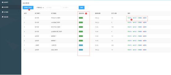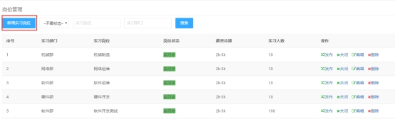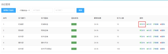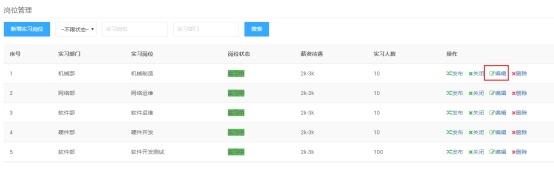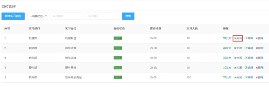 点击岗位列表里的【关闭】,可关闭实习岗位。
