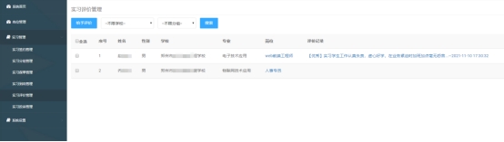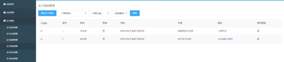 系统中有岗位管理和学生实习管理两大功能模块,方便企业端对实习生进行高效管理。