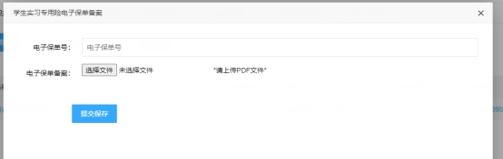 学校或企业务必于学生出发前购买学生实习责任专用保险,点击【电子保单备案】,上传电子保单号和电子保单PDF文件,进行电子保单备案。点击【购买实习专用险】,可查看有关保险公司信息。