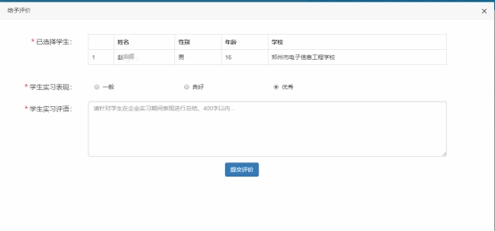 点击【给予评价】,可以对学生在实习期间的表现进行评价。