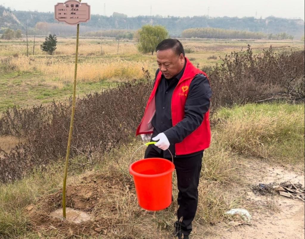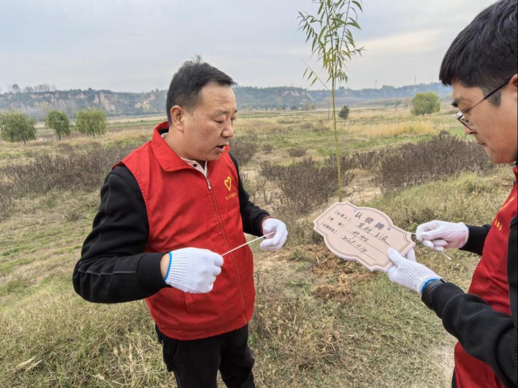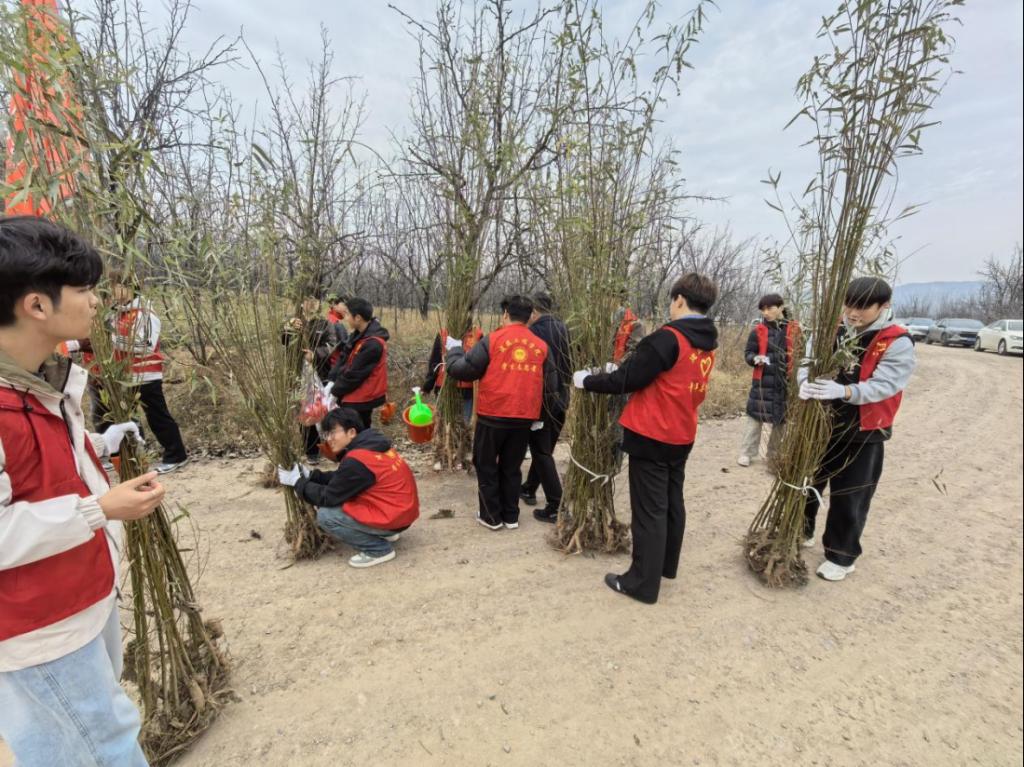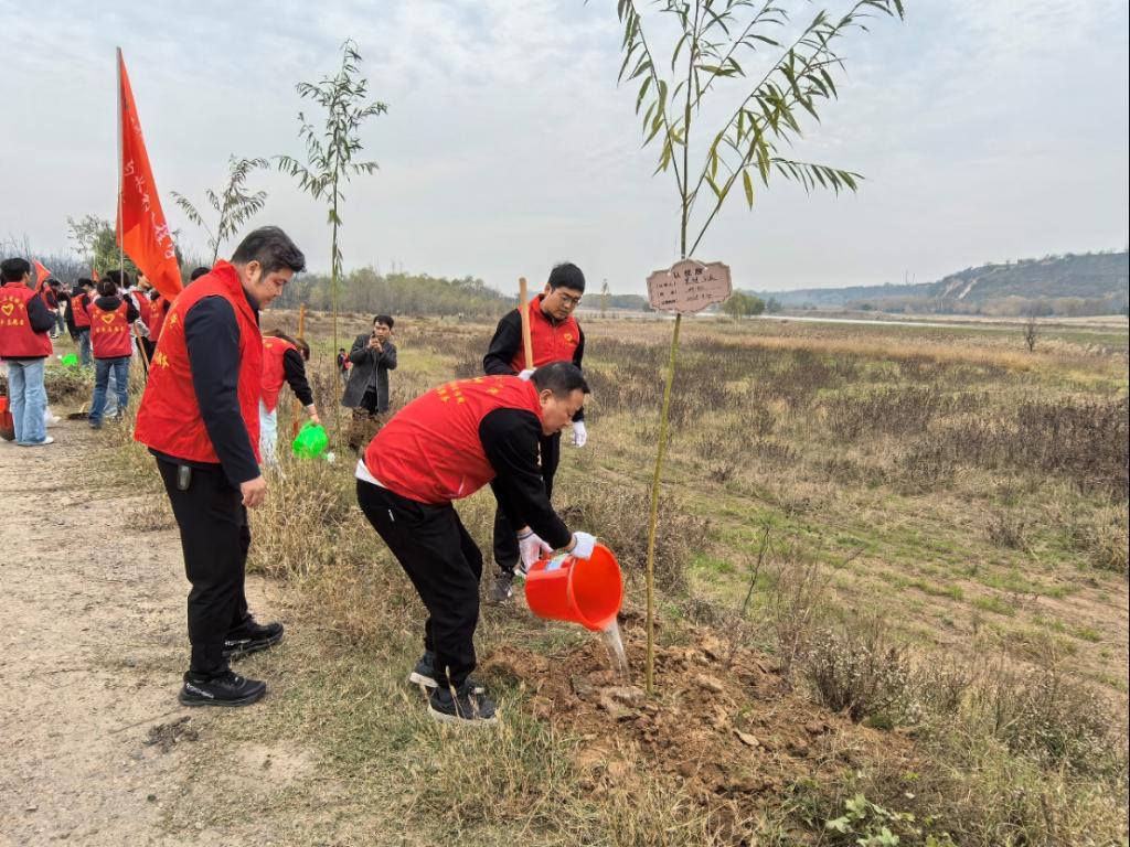 初冬正午,阳光温煦。黄河冯佐渡口岸边,2003网站太阳集团党总支、团总支学生会的80余名师生,与水电十一局九分局30余名党员骨干及沿河公路滩涂工作人员齐聚于此,共同投身这场意义深远的生态实践。活动现场旌旗招展,人头攒动,一派热火朝天的劳动景象跃然眼前。本次活动紧密围绕“清滩整治、绿植补栽”的核心内容展开。建工师生与企业青年在沿河公路滩涂工作人员的专业指导下,充分发挥建筑专业“景观设计”的技能优势,将所学应用于实践。大家分工协作,默契配合,挥锹铲土、扶苗填坑、培土浇水、挂牌认领,每一个步骤都一丝不苟。经过数小时的辛勤劳作,共计600棵新栽的柳树苗在黄河岸线迎风挺立,形成了一道崭新的绿色屏障,为初冬的黄河滩涂注入了勃勃生机。