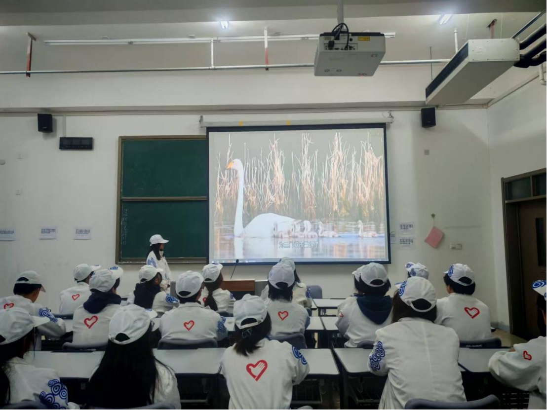 活动筹备阶段,学院学生会紧扣科普实效,精心整合来自国家林业和草原局官网的科普视频、三门峡黄河湿地管理处的宣传资料以及央视《天鹅归来》纪录片的精华片段,搭建起内容扎实、形式生动的科普学习平台。活动中,伴随光影流转,同学们沉浸式走进白天鹅的越冬世界,深入了解其形态特征、生活习性及迁徙规律,深刻认识到三门峡黄河湿地对白天鹅安全越冬的重要作用,切身感悟“湿地是地球之肾、鸟类家园”的生态内涵。