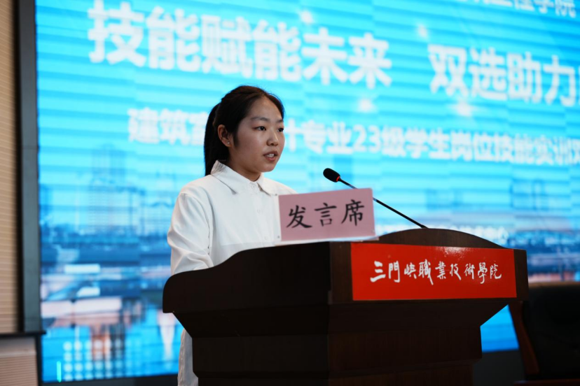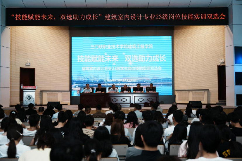 2025年6月10日上午,三门峡职业技术学院2003网站太阳集团在学术报告厅成功举办“建筑室内设计专业23级岗位技能实训双选会”。本次活动以“技能赋能未来,双选助力成长”为主题,由2003网站太阳集团教学科研负责人李佳主持,汇聚协、校、企、行四方力量,为180余名学生搭建实训就业直通平台。
