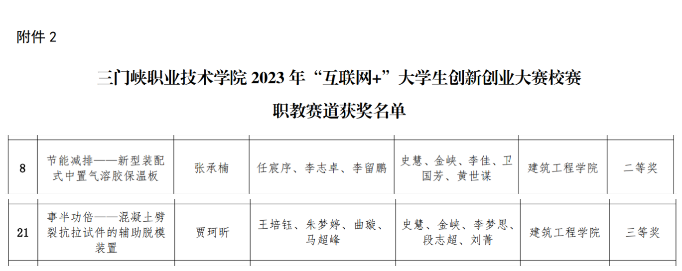 6月16日,三门峡职业技术学院第九届“互联网+”大学生创新创业大赛校赛决赛在我院学术报告厅举行。工程造价专业在本次“互联网+”大学生创新创业大赛中积极参赛,最终由专业史慧老师指导得两个项目“节能减排——新型装配式中置气溶胶保温板”获得二等奖、“事半功倍——混凝土劈裂抗拉试件的辅助脱模装置”获得三等奖的良好成绩。